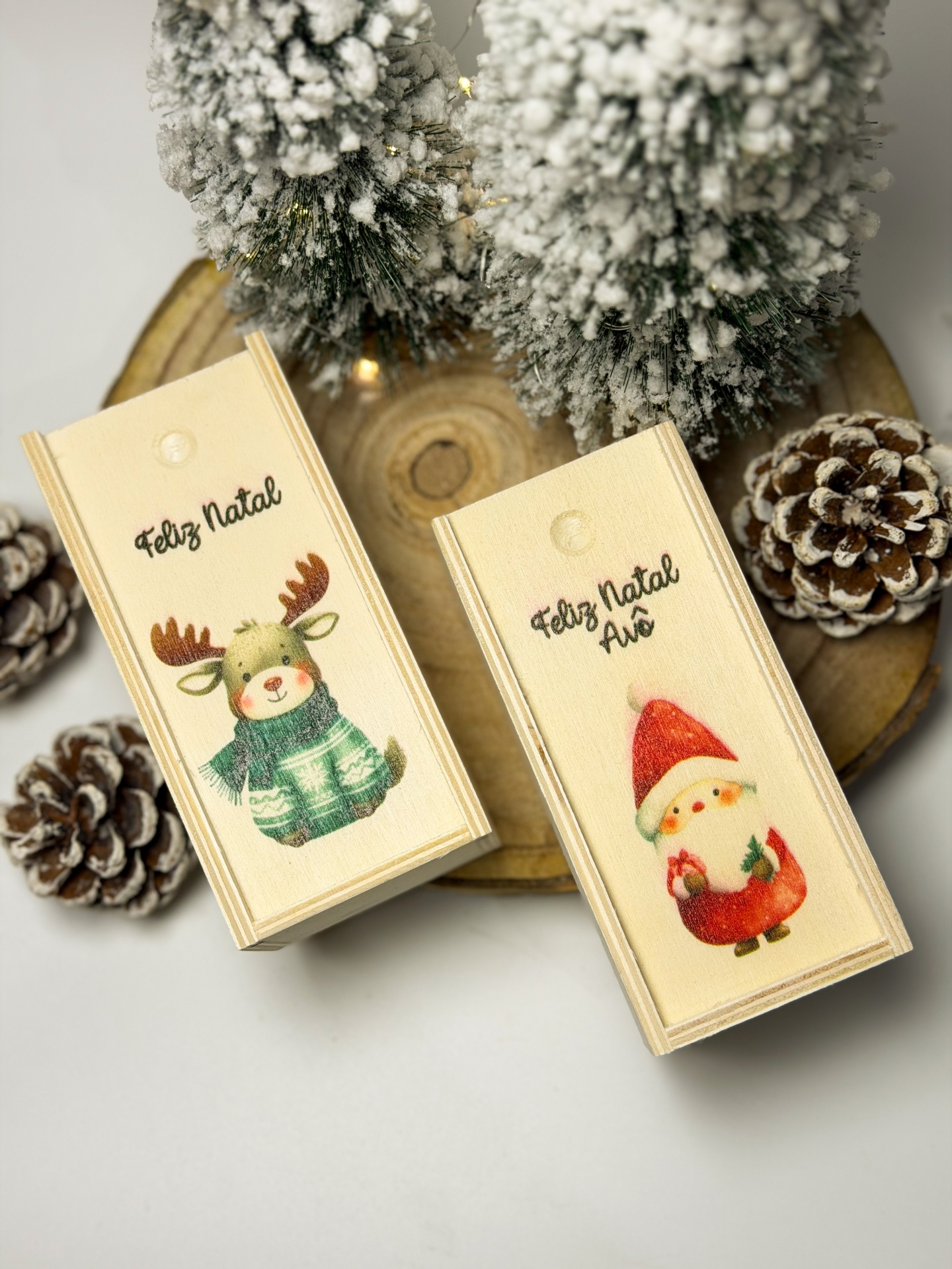 Torna os teus presentes ainda mais especiais com esta caixa de oferta em madeira, perfeita para surpreender com elegância e um toque de magia. Cada peça é produzida em madeira de alta qualidade e decorada com ilustrações natalinas super fofas 🎄