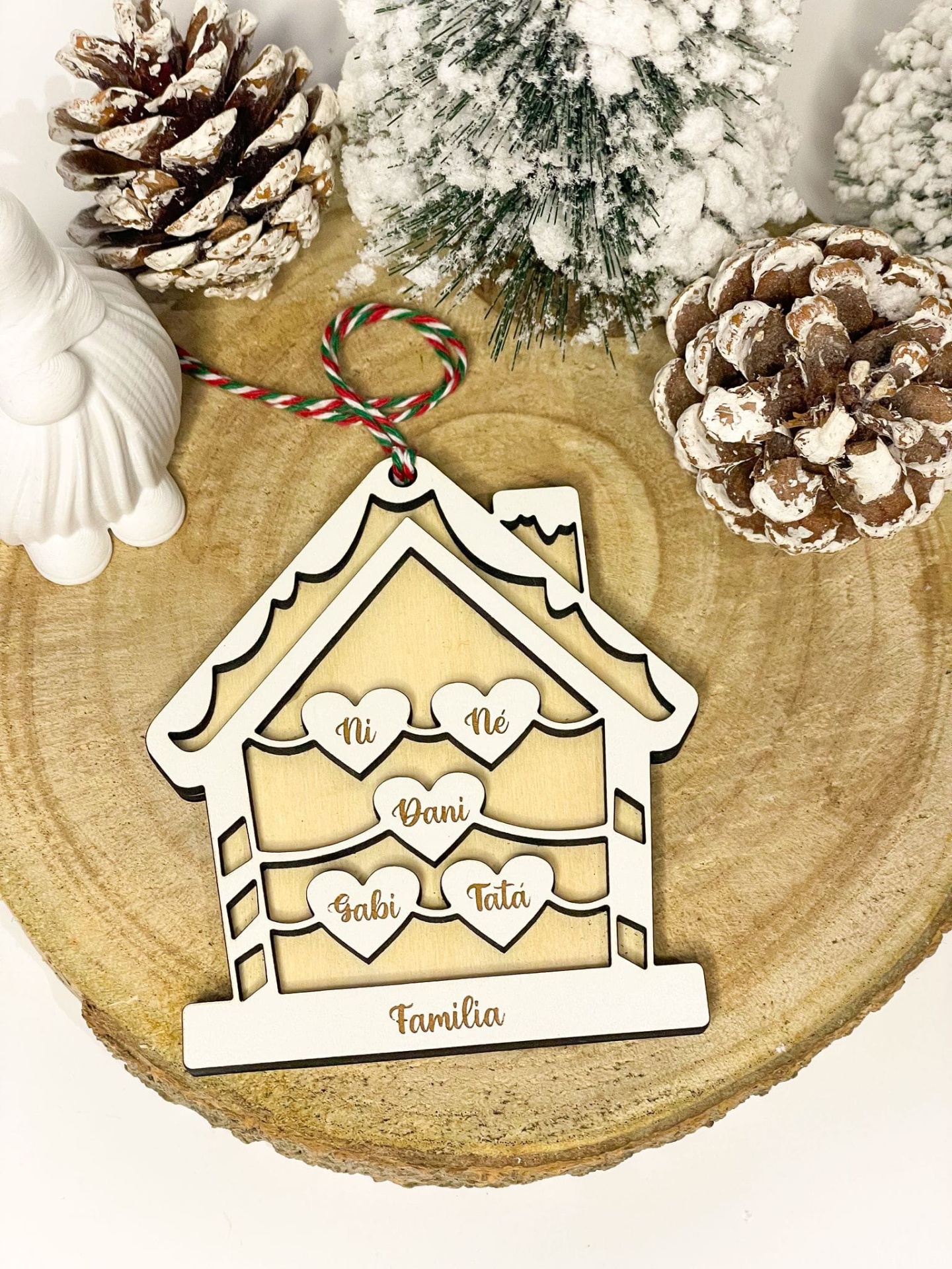 Esta casa em madeira personalizada com nomes gravados é o pendente perfeito para a tua árvore — ou um presente cheio de carinho para oferecer